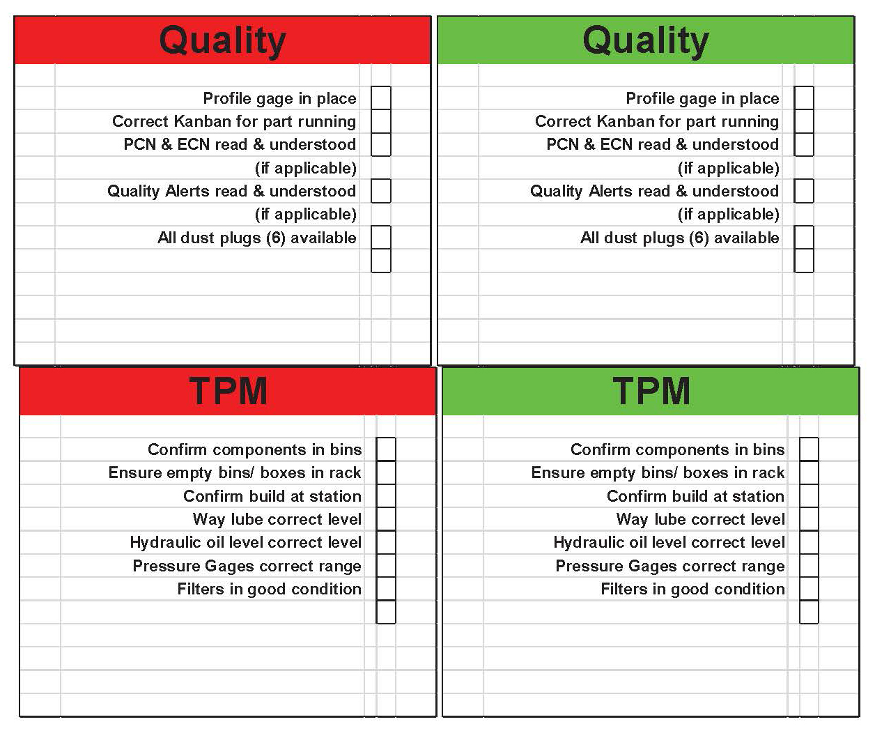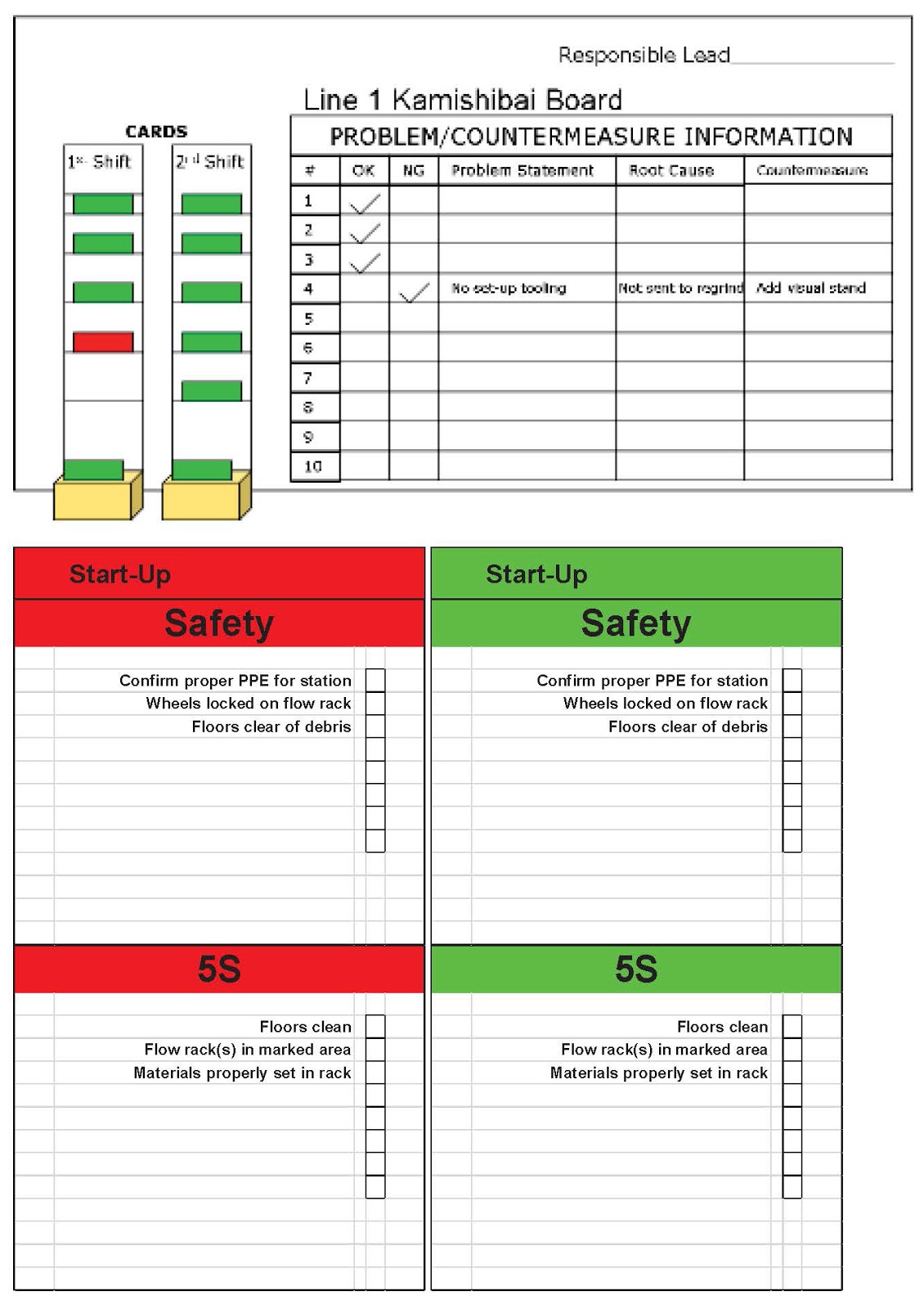 In the kamishibai system, faithfully completing the audits is as important as the result of the audit itself. The purpose is not to find faults, although problems should certainly be made visible. The purpose is to get in the habit of checking each day.